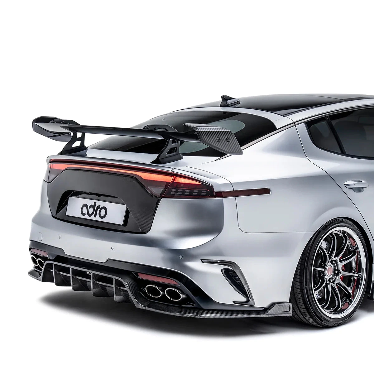 Stand out with this incredible Adro Carbon Fiber AT-R2 Swan Neck Wing for your Kia Stinger. (Years: 2022 – Present)