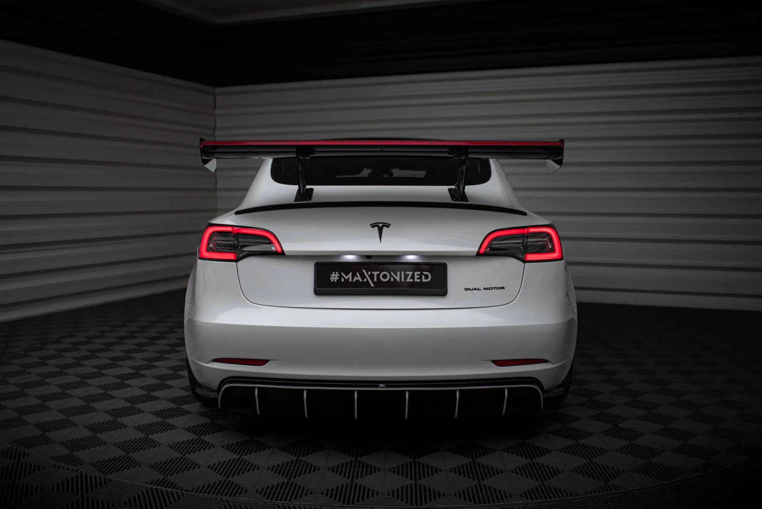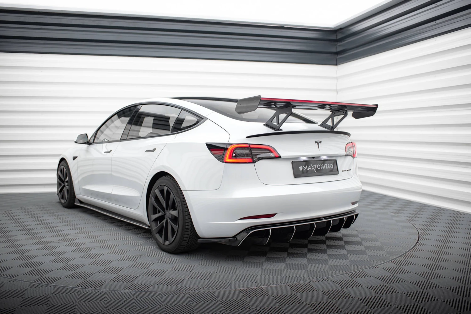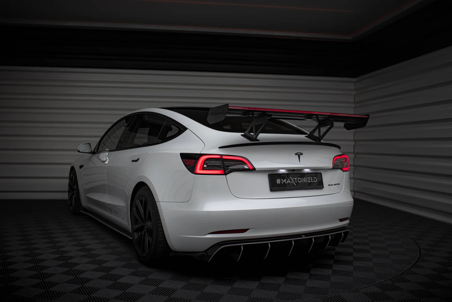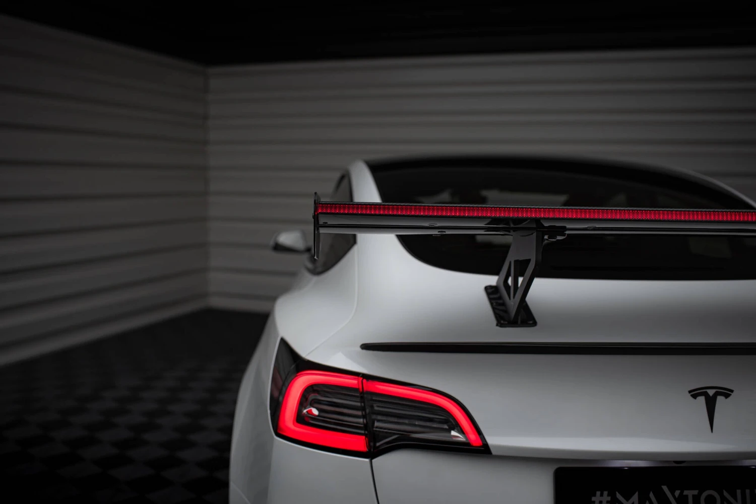 Stand out with this incredible Maxton Design Carbon Fiber Rear Wing + LED for your Tesla Model 3. (Years: 2017 – Present)