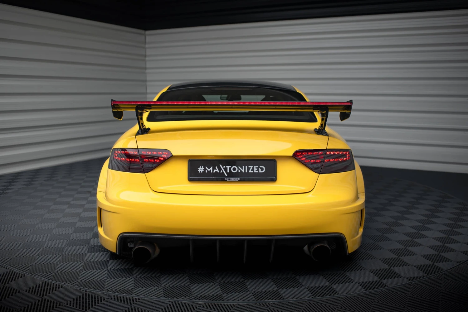 Stand out with this incredible Maxton Design Carbon Fiber Rear Wing with External Brackets Uprights + LED for your Audi A5 Coupe 8T. (Years: 2007 – 2017)
