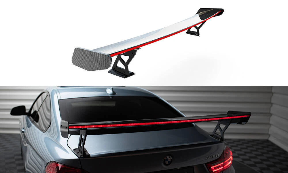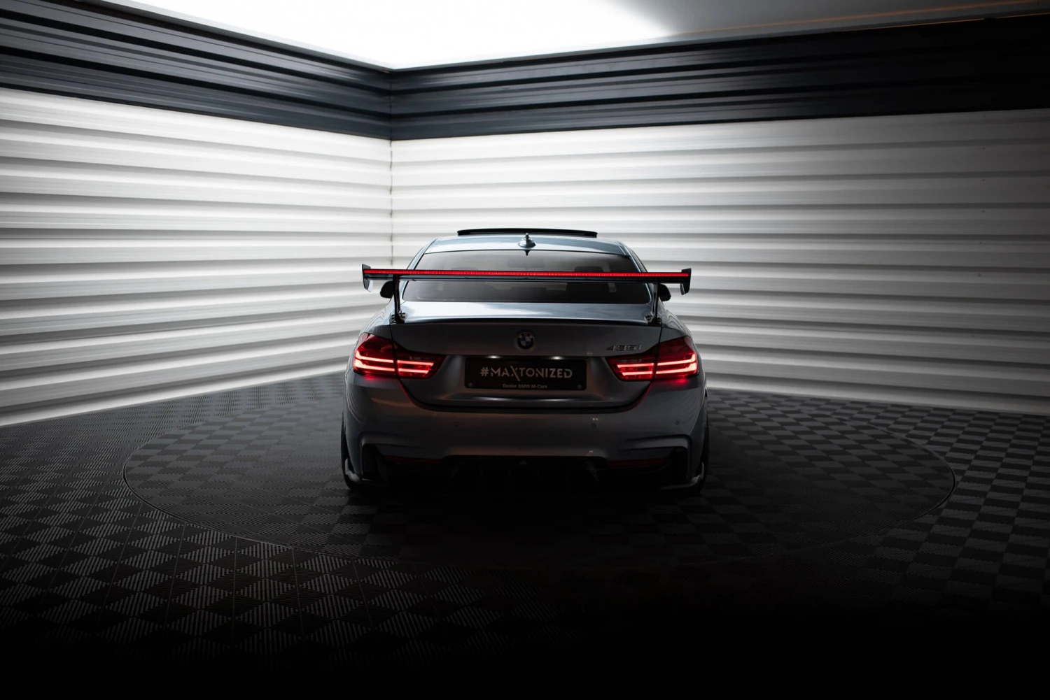 Stand out with this incredible Maxton Design Carbon Fiber Rear Wing with External Uprights Brackets + LED for your BMW Series 4 / Series 4 M-Pack Coupe F32. (Years: 2013 – 2020)