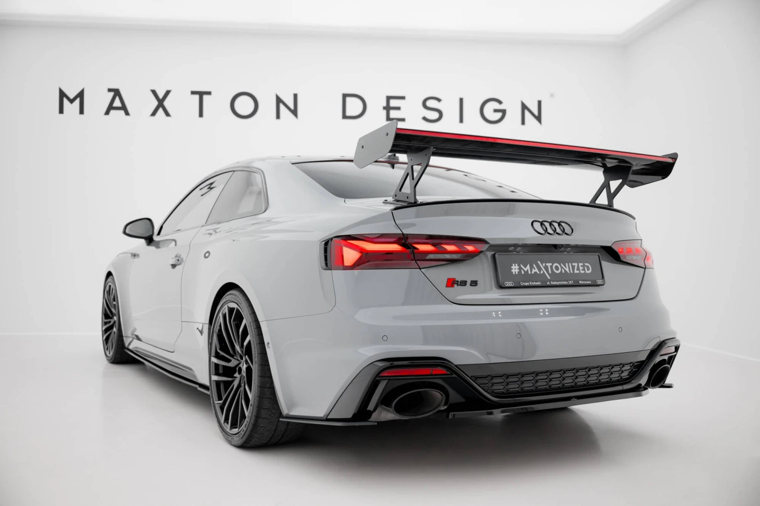 Stand out with this incredible Maxton Design Carbon Fiber Rear Wing with External Brackets Uprights V.1 + LED for your Audi A5 / A5 S-Line / S5 / RS5 Coupe F5 / F5 Facelift. (Years: 2017 – 2024)