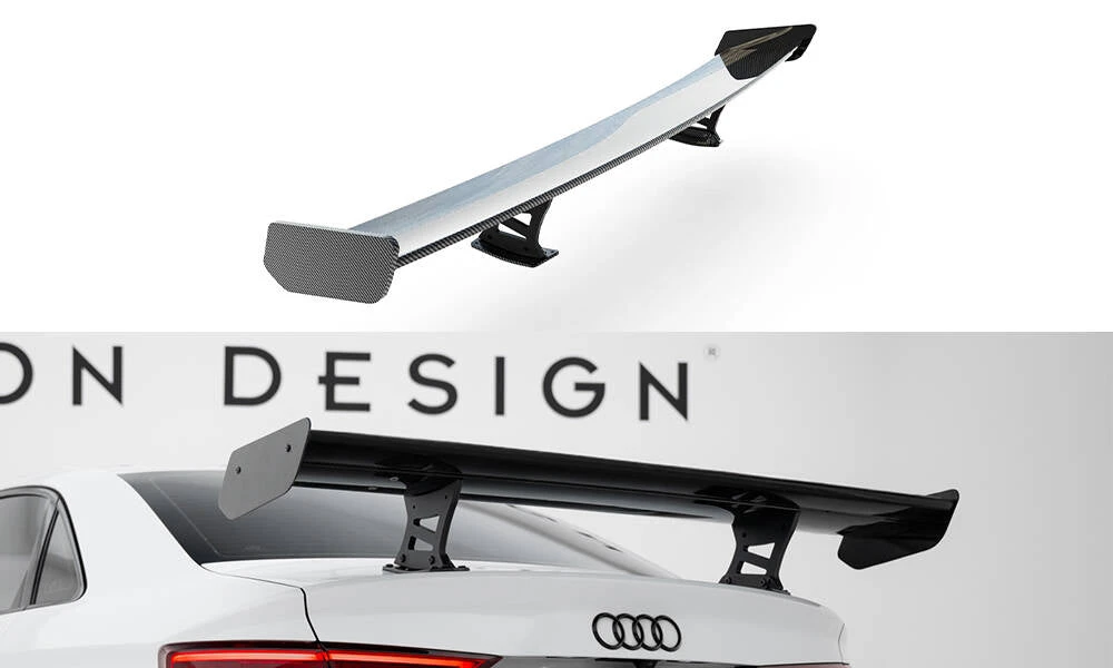 Stand out with this incredible Maxton Design Carbon Fiber Rear Wing with Internal Brackets Uprights for your Audi A3 / A3 S-Line / S3 / RS3 Sedan 8V / 8V (Facelift). (Years: 2013 – 2020)
