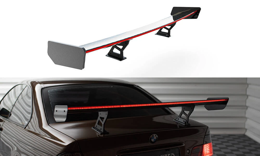 Stand out with this incredible Maxton Design Carbon Fiber Rear Wing with Internal Brackets Uprights + LED for your BMW Series 3 Coupe E46. (Years: 1998 – 2005)