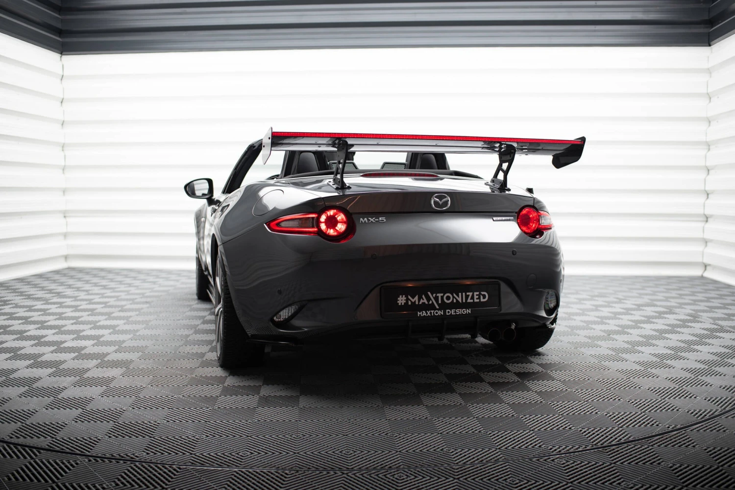 Stand out with this incredible Maxton Design Carbon Fiber Rear Wing with Internal Brackets Uprights + LED for your Mazda MX-5 ND (MK4). (Years: 2015 – Present)