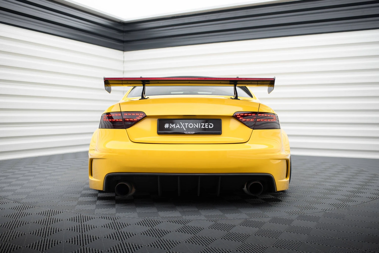 Stand out with this incredible Maxton Design Carbon Fiber Rear Wing with Upper Swan Mounting + LED for your Audi A5 Coupe 8T. (Years: 2007 – 2017)