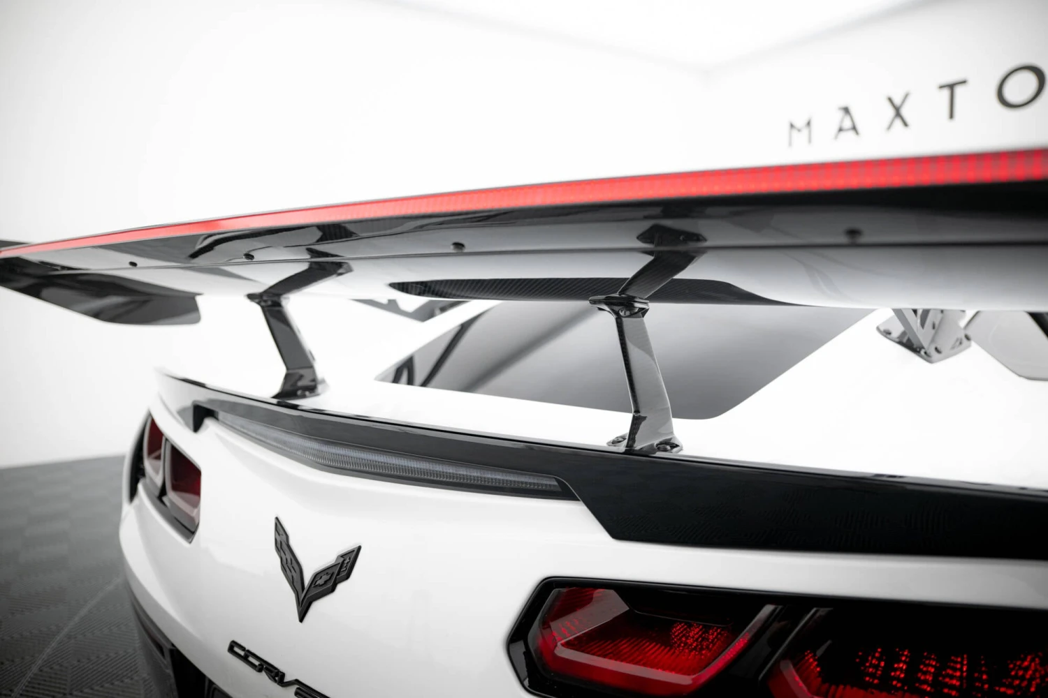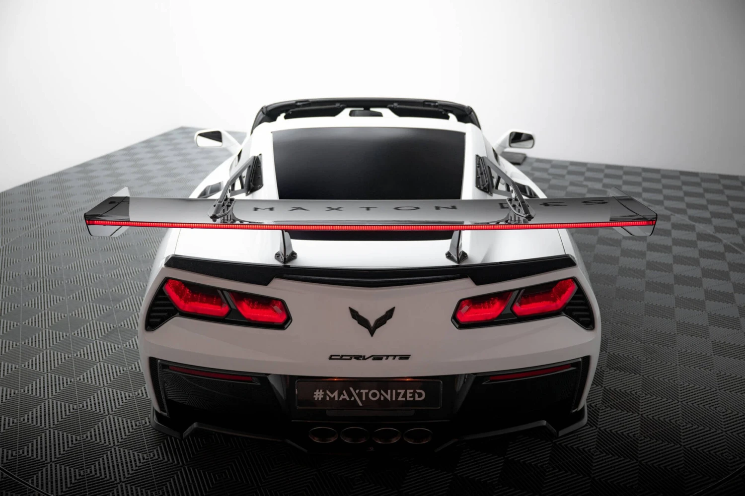 Stand out with this incredible Maxton Design Carbon Fiber Rear Wing with Upper Swan Mounting + LED for your Chevrolet Corvette Stingray / Grand Sport C7. (Years: 2013 – 2019)