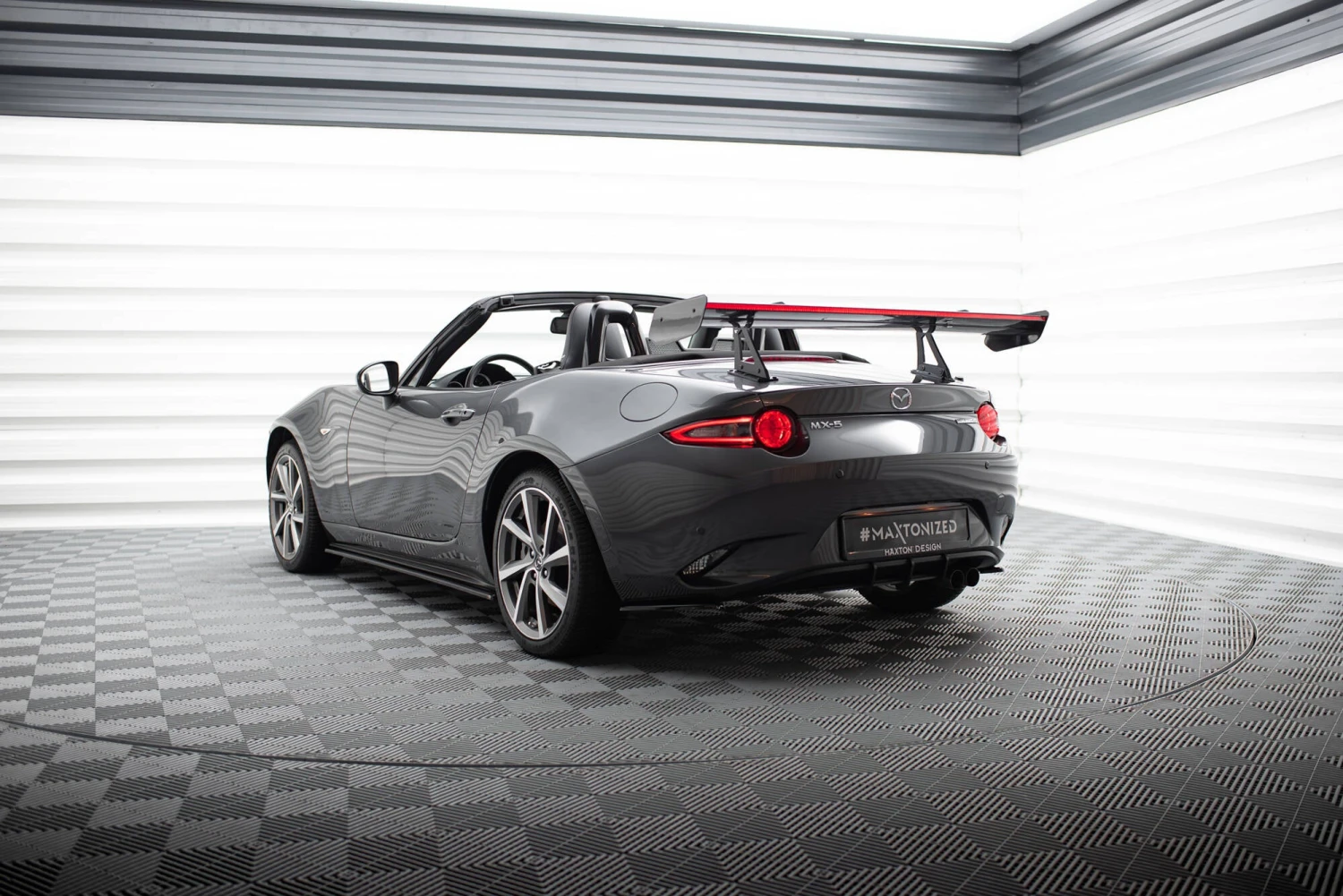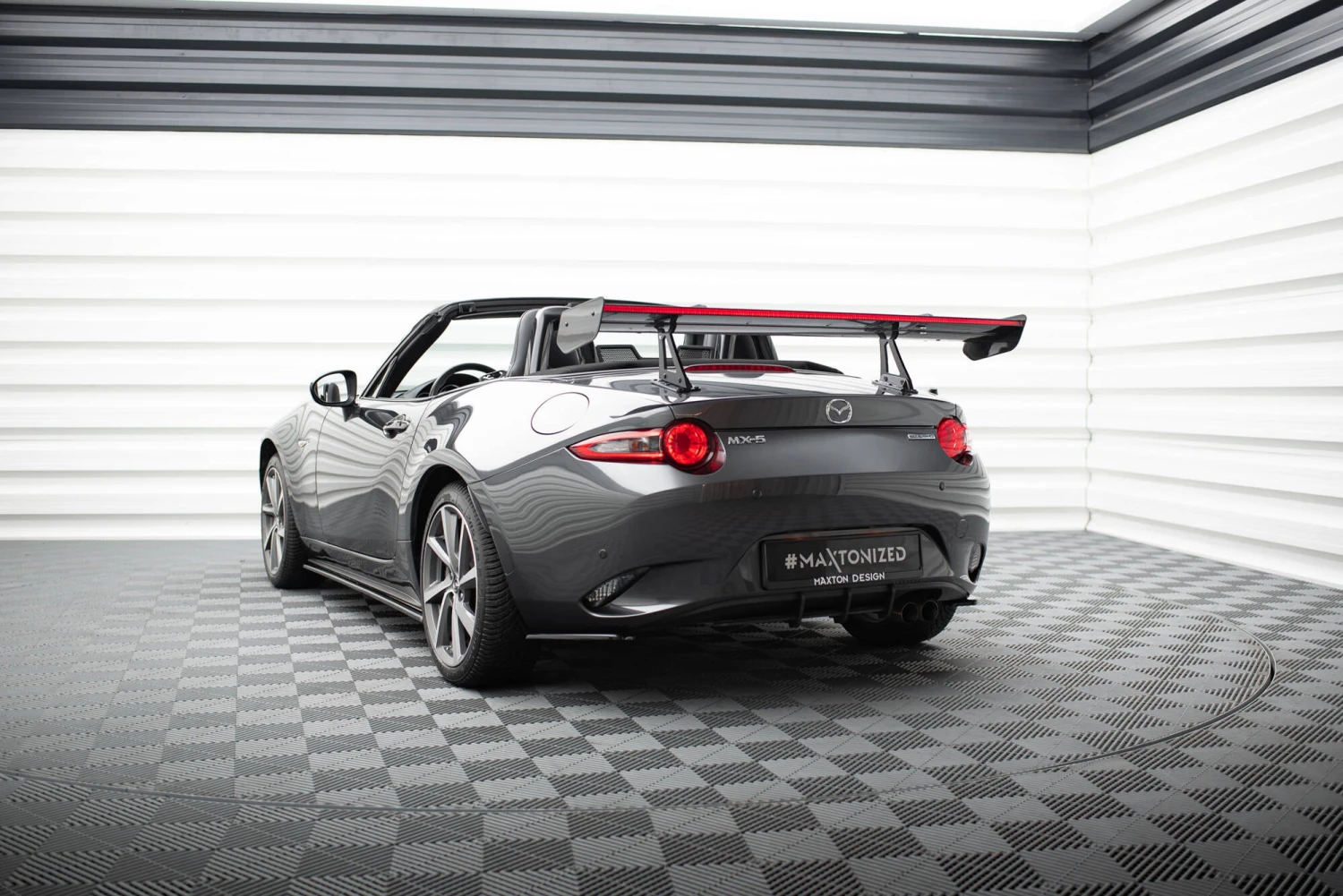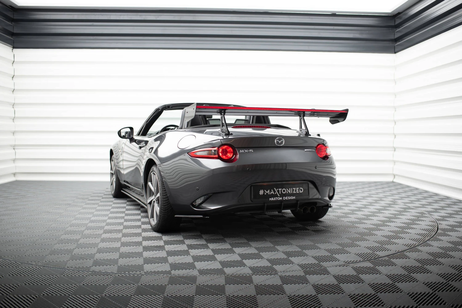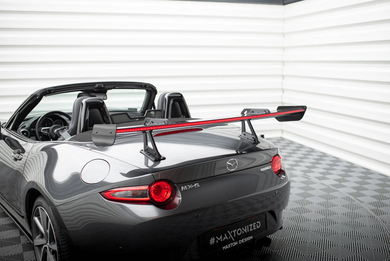 Stand out with this incredible Maxton Design Carbon Fiber Rear Wing with Upper Swan Mounting + LED for your Mazda MX-5 ND (MK4). (Years: 2015 – Present)